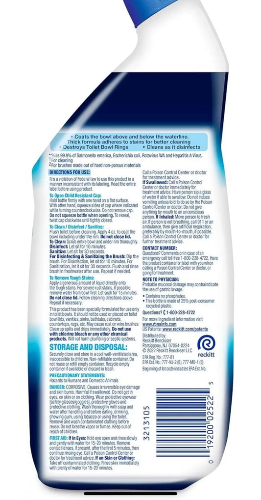 Lysol Power Toilet Bowl Cleaner Gel, Cleaning Disinfecting Stain Removal 24oz