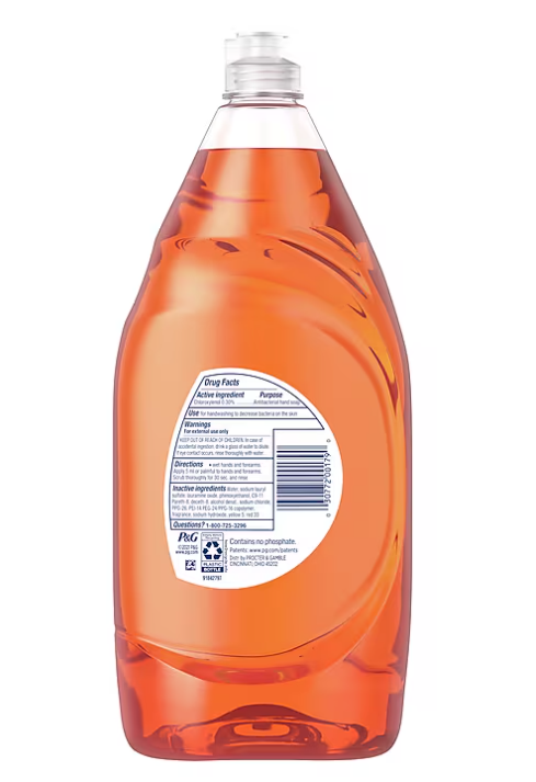 Dawn Ultra Antibacterial Liquid Dish Soap, Orange, 38 oz.