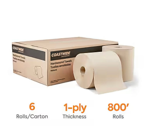 Coastwide Professional™ Recycled Hardwound Paper Towels, 1-ply, 800 ft./Roll, 6 Rolls/Carton