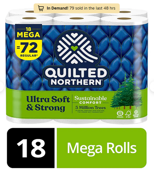 Quilted Northern Ultra Soft & Strong 2-Ply Standard Toilet Paper, White, 295 Sheets/Roll, 18 Rolls/Case