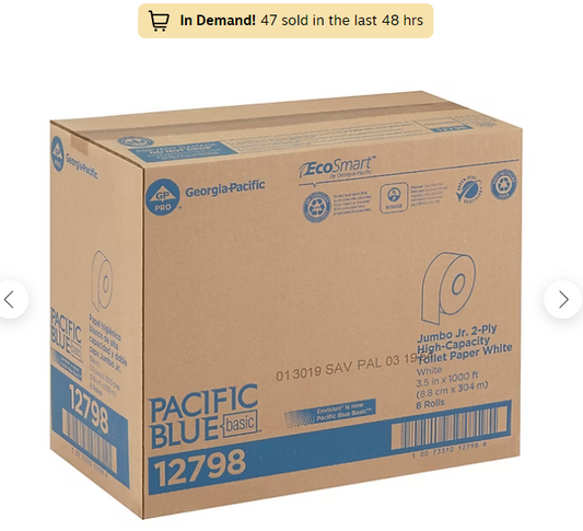 Pacific Blue Recycled Jumbo Jr. Toilet Paper, 2-Ply, White, 1000 ft./Roll, 8 Rolls/Carton