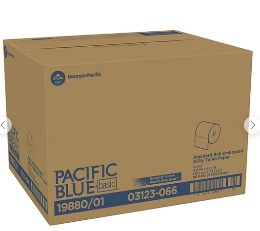 Pacific Blue Basic Standard Toilet Paper, 2-Ply, White, 550 Sheets/Roll, 80 Rolls/Carton