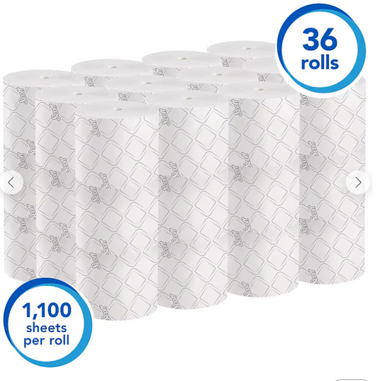 Scott Pro 2-Ply Small Core Standard Toilet Paper, White, 1100 Sheets/Roll, 36 Rolls/Carton